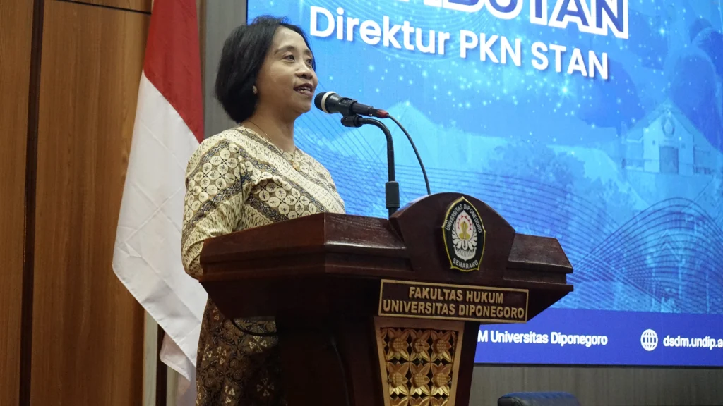 Turut memberikan sambutan Evy Mulyani, Ak., M.B.A., Ph.D., selaku Direktur PKN STAN, yang mengapresiasi kolaborasi Undip dan PKN STAN dalam pengembangan SDM bidang pengelolaan keuangan dan aset.