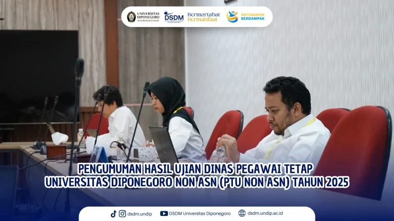 Direktorat Sumber Daya Manusia telah melaksanakan Ujian Dinas Pegawai Tetap Universitas Diponegoro Non Aparatur Sipil Negara (PTU Non ASN) pada...
