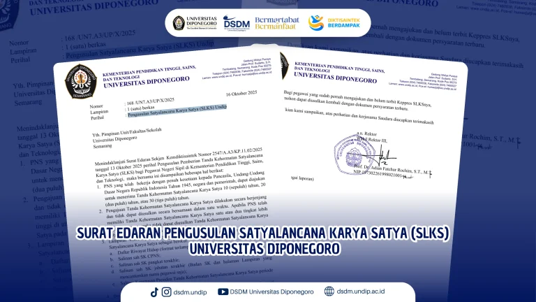 Universitas Diponegoro menerbitkan Surat Edaran Nomor 168/UN7.A3/UP/X/2025 tentang Pengusulan Tanda Kehormatan Satyalancana Karya Satya (SLKS) bagi Pegawai Negeri Sipil di...