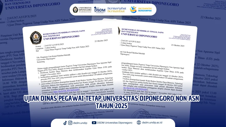 Dalam rangka mendukung pengembangan karier Pegawai Tetap Universitas Diponegoro Non Aparatur Sipil Negara (PTU Non ASN), Universitas Diponegoro melalui Direktorat...