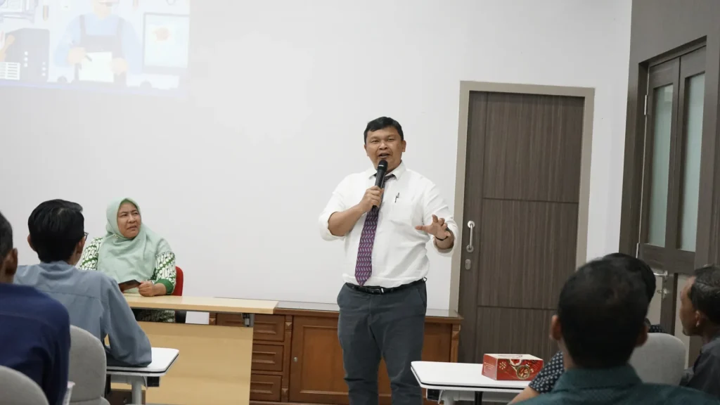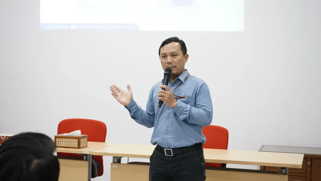 Selanjutnya, Sugiyanto, S.Kom. selaku Supervisor Pengembangan Karier DSDM menyampaikan penjelasan teknis terkait mekanisme pelaksanaan asesmen teknisi, termasuk tata cara penggunaan aplikasi sistem Asesmen Undip (AUDI) yang akan digunakan sebagai media pelaksanaan tes berbasis komputer.