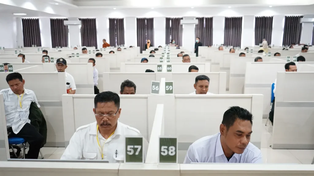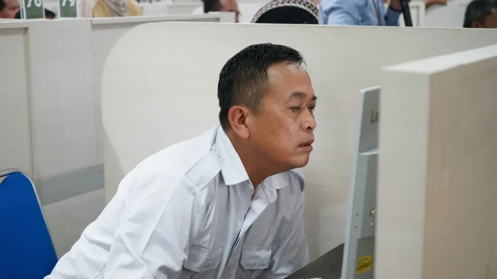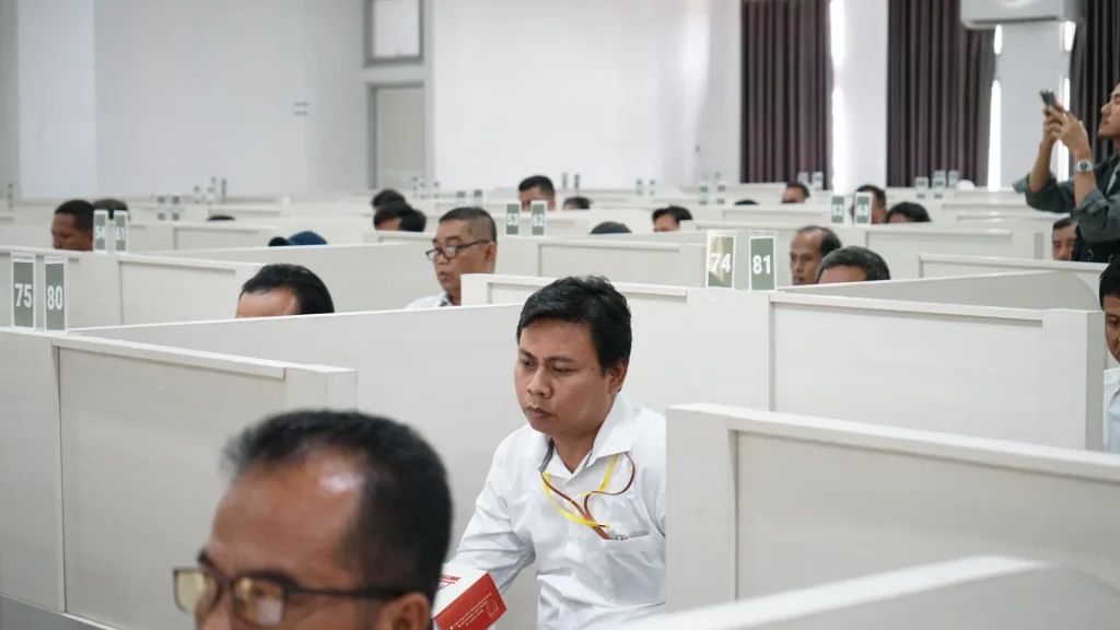 Pelaksanaan ujian dilakukan secara computer based test (CBT) menggunakan Sistem Asesmen Undip (AUDI). Peserta mengerjakan soal-soal yang telah disesuaikan dengan bidang peminatan teknisi masing-masing, sehingga hasil asesmen dapat mencerminkan kompetensi spesifik sesuai bidang yang dituju. Kegiatan berlangsung tertib dan lancar, dimulai pada pukul 13.00 WIB hingga selesai pada pukul 15.30 WIB, dengan pengawasan langsung oleh panitia guna memastikan integritas dan kelancaran proses asesmen.
